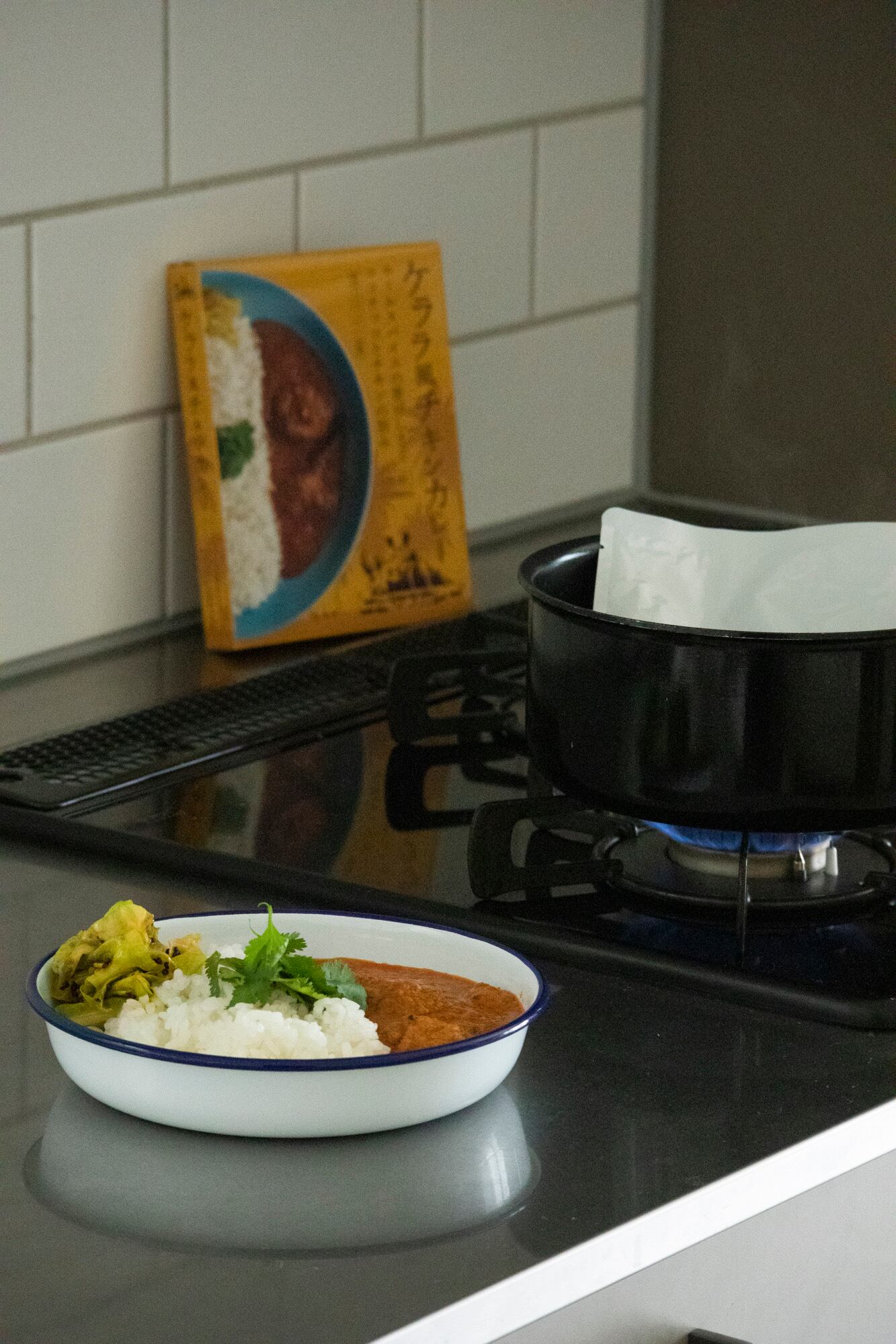 野菜(玉ねぎ(国産)、にんにく、しょうが)、鶏肉、トマト・ピューレーづけ、食用なたね油、ココナッツミルクパウダー、コリアンダー、唐辛子、パプリカ、レモンジュース、食塩、マスタードシード、ターメリック、クミン/酸味料、香料、(一部に乳成分・鶏肉を含む)